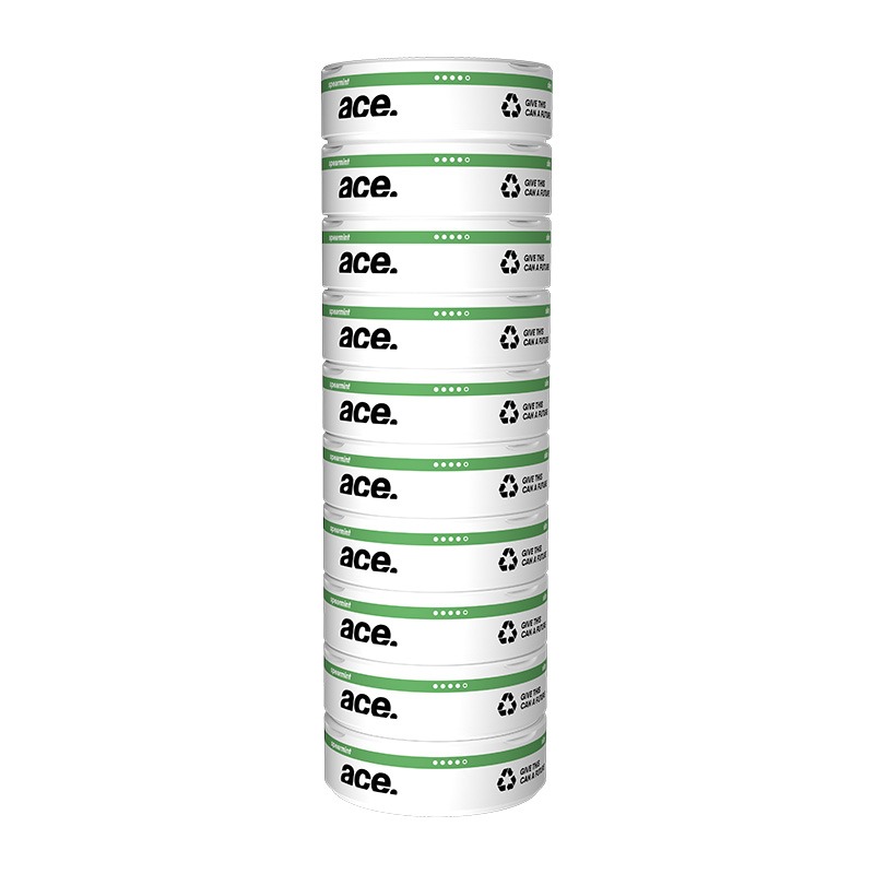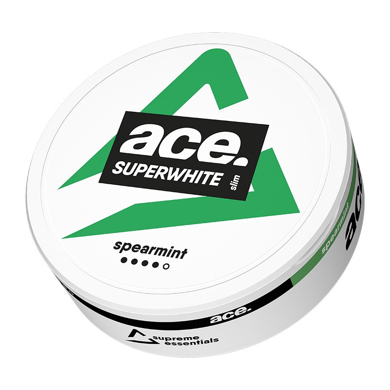 ACE Spearmint från Ministry of Snus är ett snus av typen Vitt Snus eller All White och nikotinpåsar som sorten även kallas. Prillan som har formatet Slim har en mildare och sötare smak av mint. Tillverkad i Danmark med utvalda ingredienser av hög kvalitet i en 100% återvinningsbar dosa.