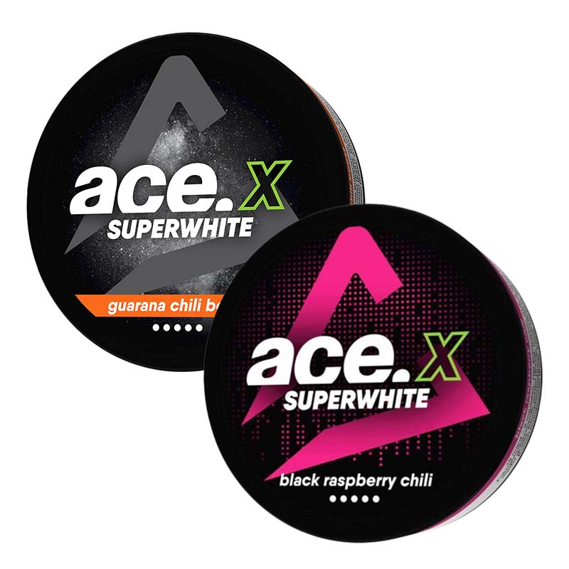 ACE X Mix 2 pack Guarana Chili Boost + Black Raspberry Chili består av en dosa vardera av följande snussorter: