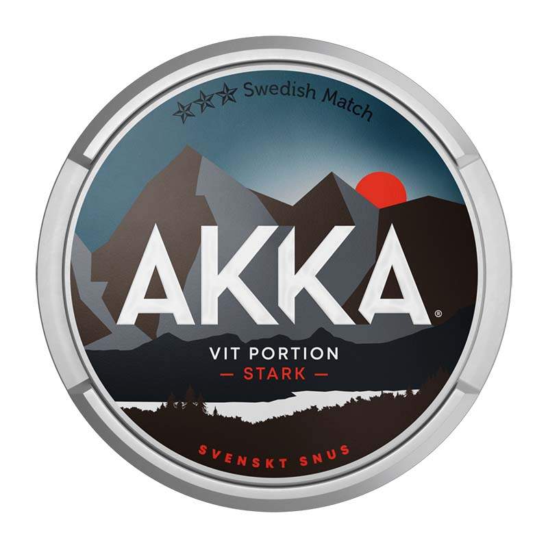 AKKA White Portion Strong kommer från producenten Swedish Match och har en kryddig smak av tobak med inslag av smaker från citrus, ros och örter. En starkare variant av AKKA White Portion. Portionssnuset har en stor prilla som är torr på ytan och med en låg fukthalt vilket ger en låg rinnighet i jämförelse med andra snussorter. Nikotinstyrkan är starkare med 2,1% eller 16 mg per prilla. Läs mer
