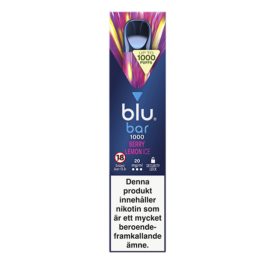 Blu Bar 1000 Berry Lemon Ice 20mg och har en nikotinstyrka på 20 mg/ml.