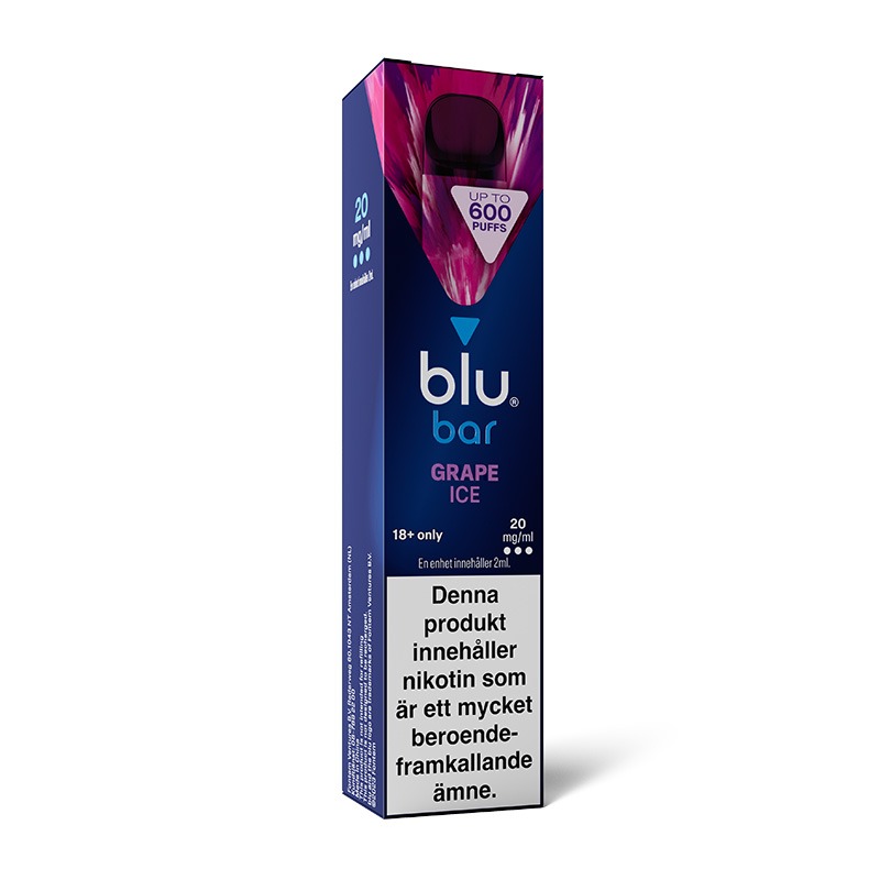 Blu Bar Grape Ice har en nikotinstyrka på 20 mg/ml.