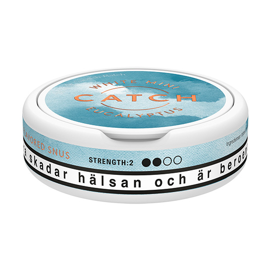 Catch Eucalyptus MIni är ett snus från tillverkaren Swedish Match. Snuset är av typen White Portionssnus, vilket innehåller tobak. Formatet är det mindre Mini, som passar bra under läppen och är diskret. Snuset har en ljus tobakskaraktär och en smak av eucalyptus och mint. Hållbarheten på snuset är ca 4,5 månader. Fukthalten är ca 47%.