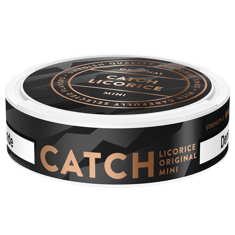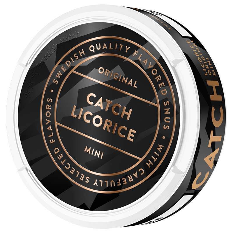 Catch Liqorice Mini är ett Portionssnus från tillverkaren Swedish Match. Prillorna har en normal styrka och har formatet Mini, en liten prilla med bra och diskret passform under läppen. Snuset har en ljus tobakskaraktär med tydliga inslag av lakrits och salmiak, samt aningen torkade örter. Hållbarheten på snuset är ca 4 månader och dess fukthalt är 51%.