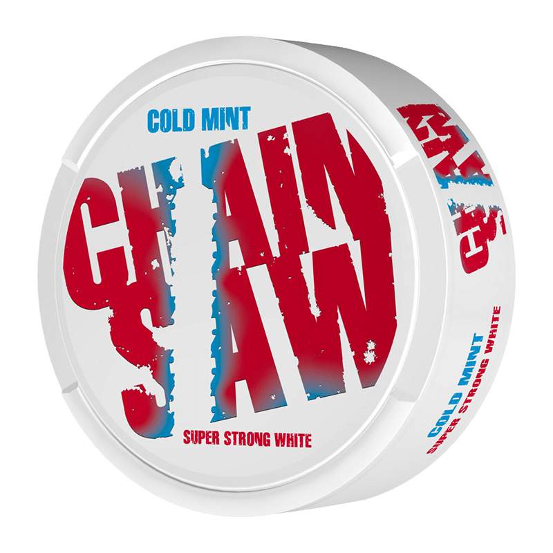 Chainsaw Cold Mint från Swedish Match via tillverkaren V2 Tobacco är ett snus av typen White Portion och har en ljus och kryddig tobakskaraktär med tydliga inslag av grönmynta samt pepparmint. Prillan är superstark och stor i formatet Large, vilken är torr på ytan med låg fukthalt för låg rinnighet. Fukthalten på snuset är 27,5%.