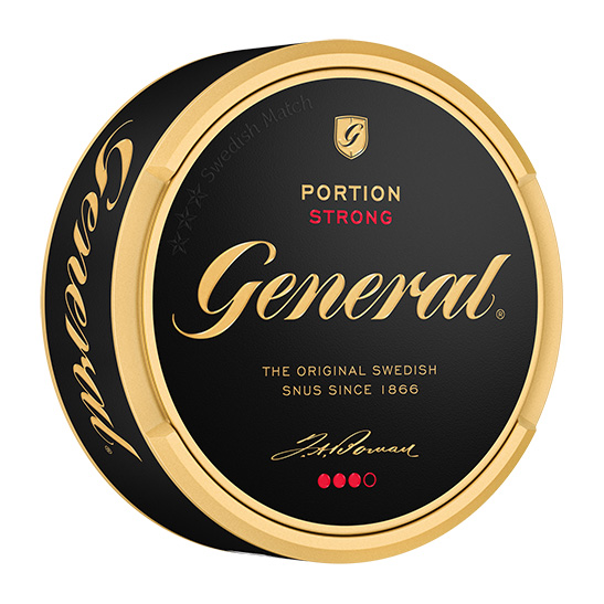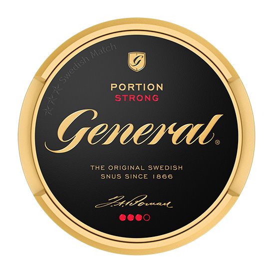 General Portion Strong är ett snus av typen Portionssnus i formatet Large. Snuset General tillverkas av producenten Swedish Match. Prillan har en kraftig och kryddig tobakskaraktär med inslag av bergamott och lakrits, samt viss smak av gröna örter och läder. En stor prilla som är fuktig på ytan för en snabb och kraftig smakrelease. Fukthalten är 48%.