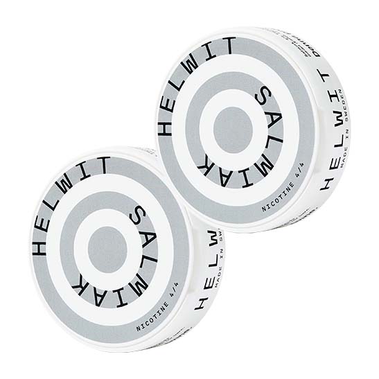 Helwit Salmiak Strong 2 pack är ett tobaksfritt Vitt Snus av typen All White eller nikotinpåsar som sorten även kallas. Snuset har en stark styrka och formatet Slim, med en något lägre vikt. Prillan har smak av lakrits. Fukthalten är 33% och dess hållbarhet är ca 12 månader.