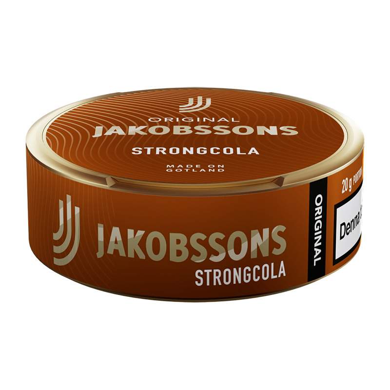 Jakobssons StrongCola Original från Gotlandssnus har en klar smak av cola med viss sötma och toner av citrus. En stor prilla av typen Portionssnus i formatet Large som är fuktig på ytan för en snabb och kraftig smakrelease. Fukthalten på snuset är 50%. Snusets hållbarhet är ca 6 månader.