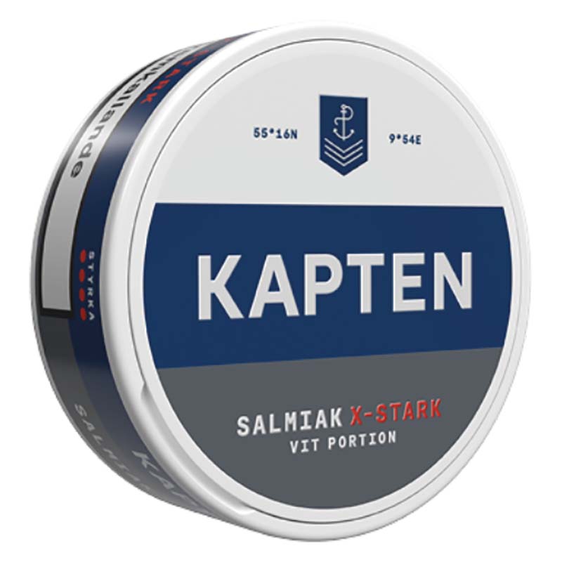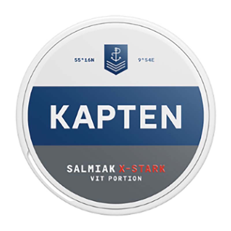 Kapten Vit Salmiak Extra Stark tillhör snussorten White Portionssnus och kommer från producenten Swedish Match. Snuset är extra starkt och prillorna har en smak av salmiak. Formatet på prillorna är den större Large. Ingår i Kaptens serie av extra starka snussorter. Fukthalten på snuset är 39% och hållbarheten är ca 6 månader.