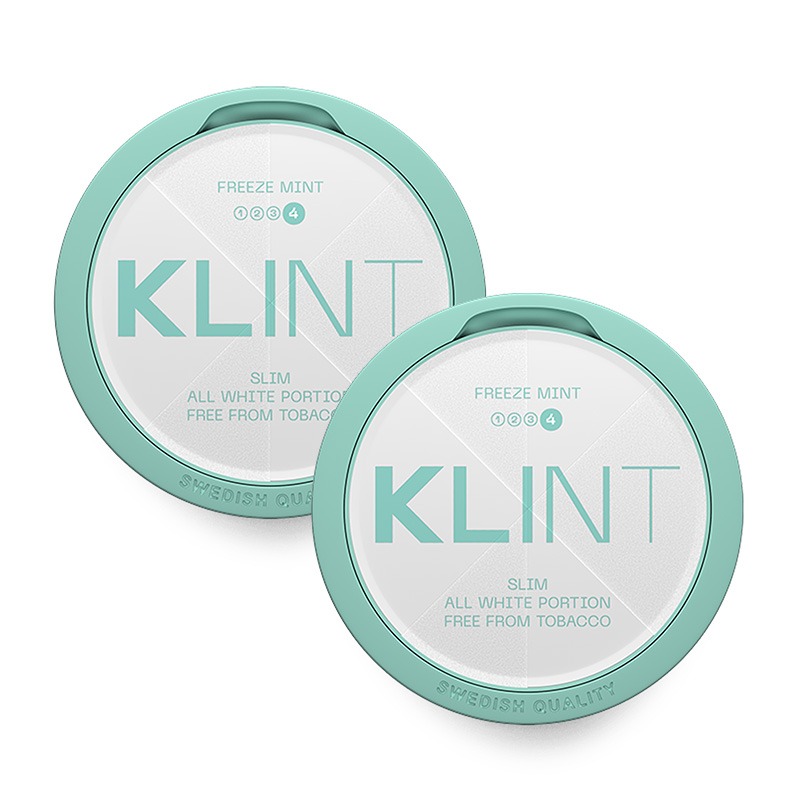 KLINT Freeze Mint Slim #4 2 pack är en nikotinpåse utan tobak, eller All White som dessa även kallas. Snuset tillverkas av företaget Habit Factory. Prillorna har formatet Slim, vilket gör att dessa har en diskret och bra passform under läppen. Prillan har en stark smakeffekt av mint och iskall menthol samt har en extra hög nikotinhalt på 16mg/g. Fukthalten är 47% och hållbarheten på snuset är ca 12 månader.
