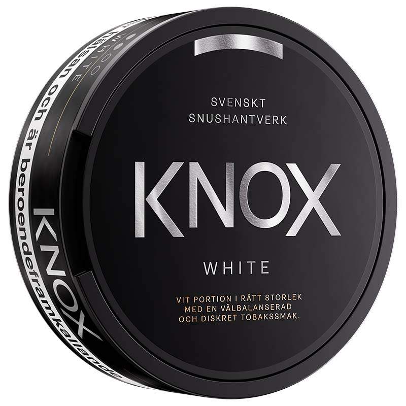 Knox White Portion från tillverkaren Skruf Snus är av typen White Portion, en prilla med tobak. Snuset har en smak av tobak samt toner av bergamott och citrus. Portionspåsarna har en låg rinnighet. Styrkan är 2 Normal med en nikotinhalt av 1,3% eller 13 mg nikotin per gram. Prillorna har en vikt av 0,8 gram vilket innebär att nikotinhalten per påse/prilla är 11 mg. Det är 24 prillor i en dosa och den totala vikten snus i en dosa blir då 19,2 gram. Hållbarheten för prillorna beräknas till ca 6 månader.