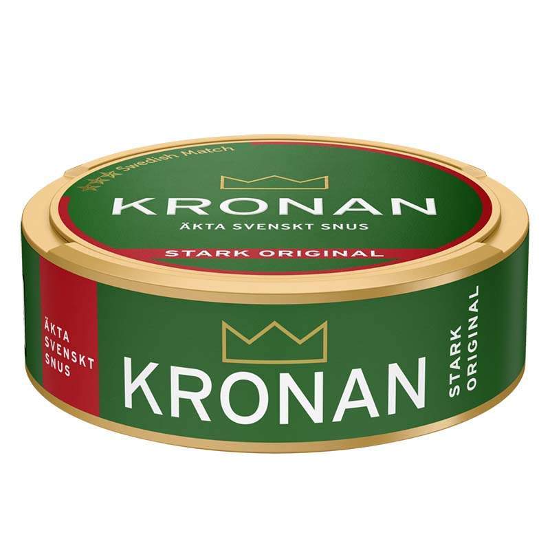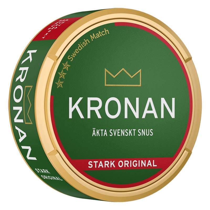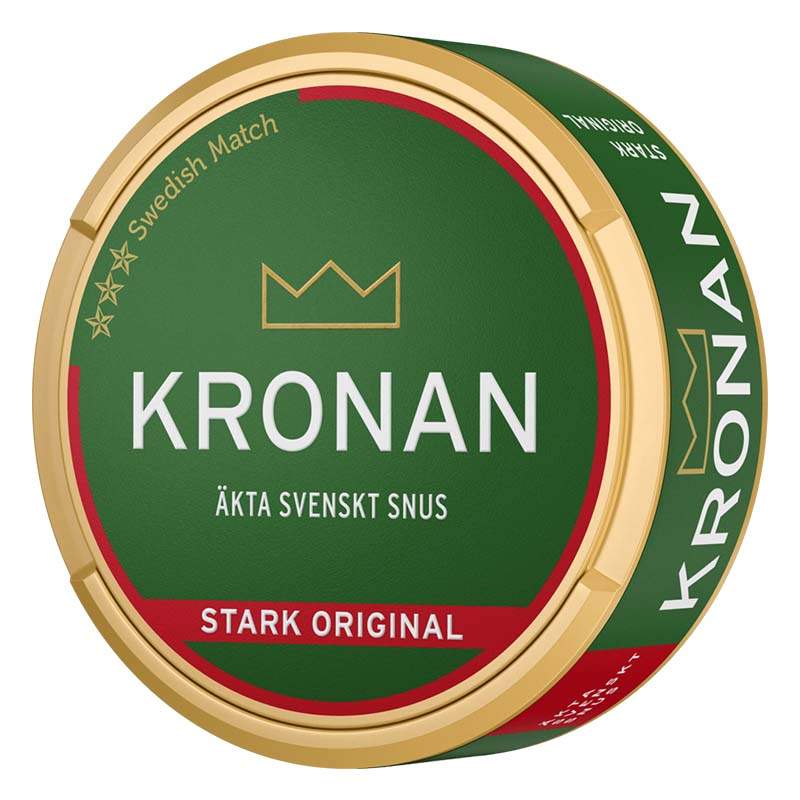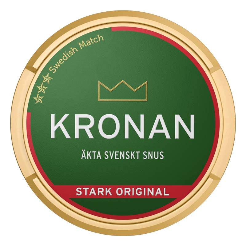 Kronan Stark Portion av typen portionssnus har en mörk och kraftig tobakskaraktär med smakinslag av viol och citrus, samt en aning gröna örter. Snuset tillverkas av producenten Swedish Match. Formatet på prillan är Large dvs en stor prilla som är fuktig på ytan, vilket ger en snabb och kraftig smakrelease. Fukthalten på snuset är 49%.