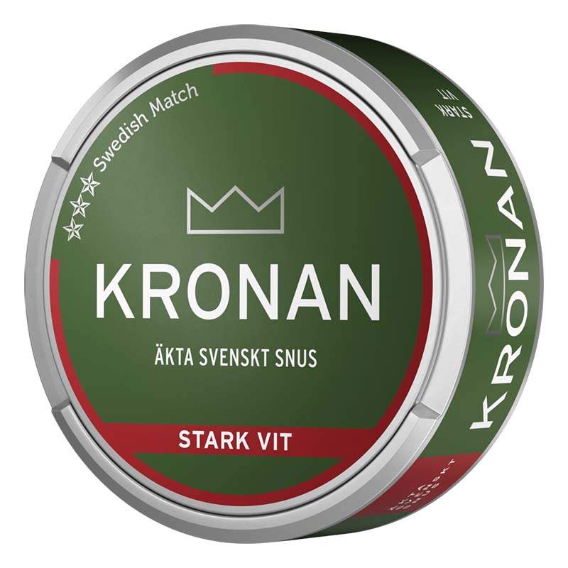 Kronan Stark Vit som tillverkas av producenten Swedish Match är ett snus av typen White Portionssnus. Prillorna har en mörk och kraftig tobakskaraktär med smakinslag av viol och citrus, liksom en viss smak av gröna örter. Formatet på prillan är Large och den är torr på ytan fast med ett fuktigt innehåll. Vilket skapar en låg rinnighet samt en varaktig smakrelease. Fukthalten på snuset är 53%.