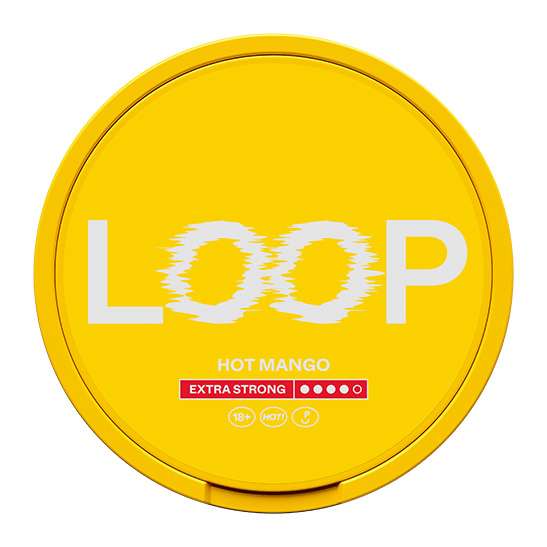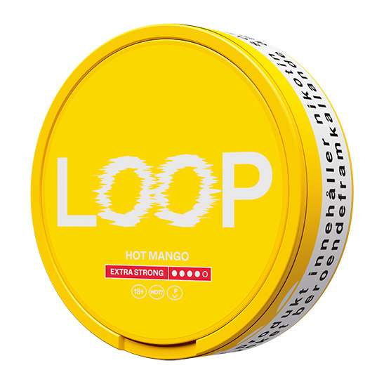LOOP Hot Mango Extra Strong från tillverkaren Another Snus Factory är ett snus av typen All White, en nikotinpåse helt utan tobak fast med nikotin. Dess smak är färsk mango och lite smak av lime och chili. Formatet på påsarna är Slim, vilket är ett mindre diskret format som passar bra under läppen. Fukthalten är 35% och dess hållbarhet är ca 12 månader.