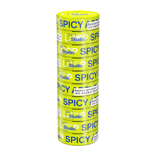 LOOP Spicy Apple Strong är ett snus av typen Vitt Snus, nikotinpåsar eller All White som dessa även kallas. Snuset kommer från tillverkaren Another Snus Factory och har prillor som är i formatet Slim. Prillorna är helt utan tobak fast med nikotin. Snuset har en krispig smak av gröna äpplen och en kick av chili.