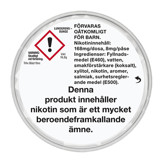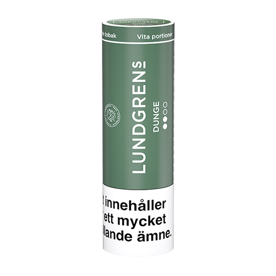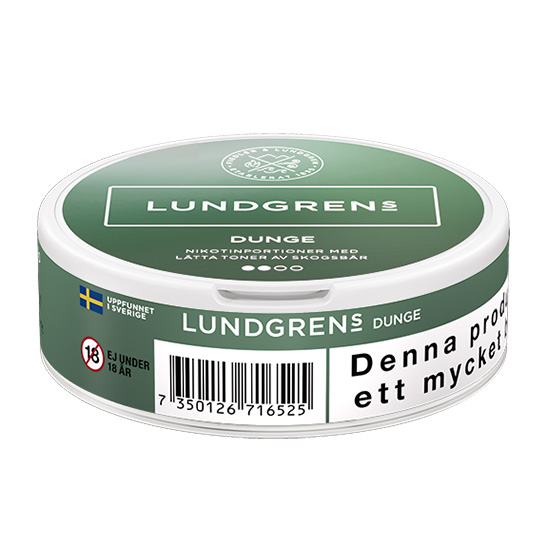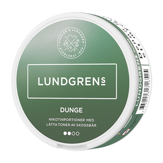 Lundgrens Dunge från producenten British American Tobacco tillhör snusvarumärket Lundgrens nya All White sortiment, eller nikotinpåsar och vitt snus som typen även kallas. En prilla helt utan tobak fast med nikotin. Prillorna har ett normalstort format i Large och en söt smak baserat på skogsbär.