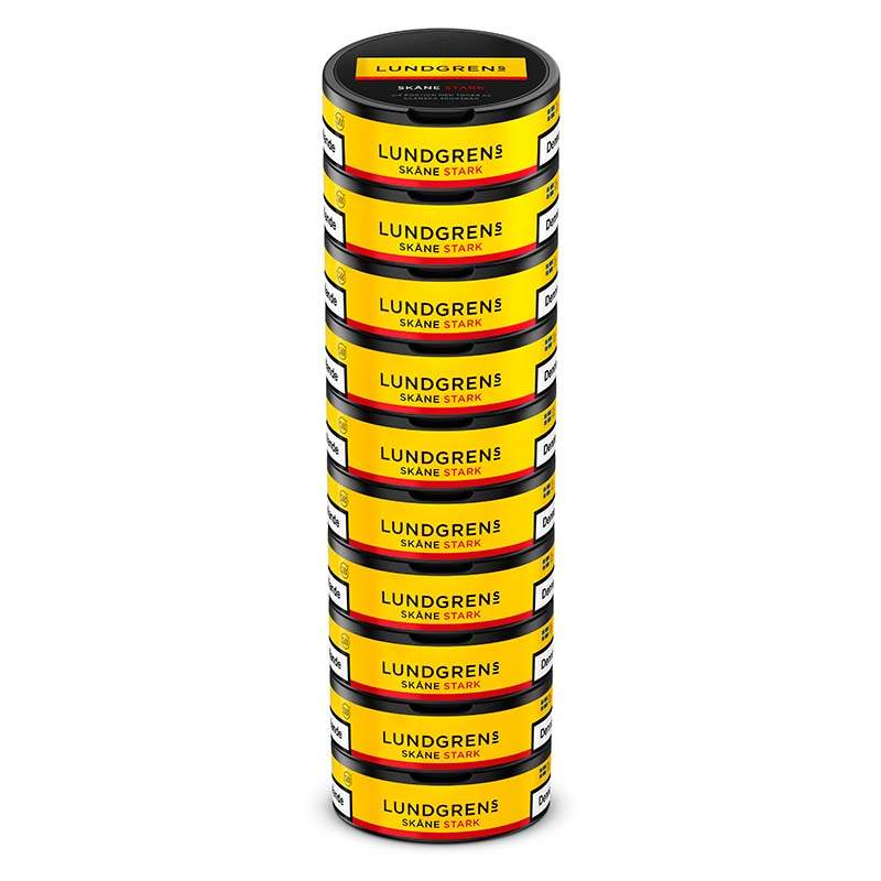 Snuset Lundgrens Skåne Stark har formatet Large och styrkan är 3 Stark. Varje prilla har ett nikotin innehåll på 15 mg per påse. Vilket omräknat till procent blir 1,73% i nikotinhalt. Varje prilla väger 0,9 gram och det är 22 prillor i varje dosa, vilket ger en total snusvikt per dosa på 19,2 gram.