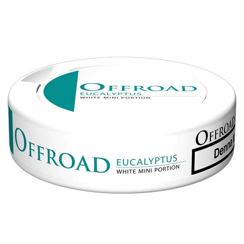Offroad Eucalyptus White Mini Portion är ett snus av typen White Portionssnus från tillverkaren Swedish Match. Snuset har en ljus tobakskaraktär med tydliga inslag av eukalyptus och mint. Formatet Mini ger dig en en liten prilla som är torr på ytan med ett fuktigt innehåll som ger en låg rinnighet, samt att snuset har en lång smak. Fukthalten är 36%. Hållbarheten på snuset är ca 7 månader.