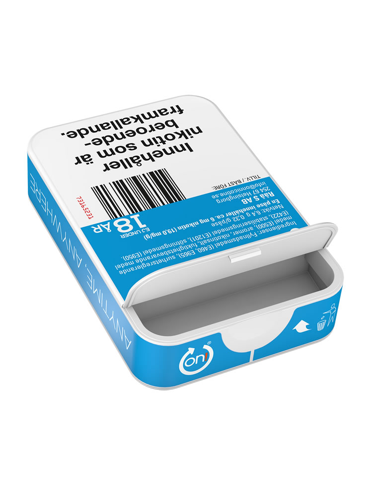 on! Mint 6mg från företaget Helix Sweden ger dig en frisk mintsmak med kylande effekt och snabb nikotinleverans direkt efter att de vita, torra påsarna blivit lite fuktiga. Snuset är av typen All White, eller nikotinpåsar och vitt snus som typen även kallas, en prilla helt utan tobak fast med nikotin. Prillan har det mindre formatet Mini som är en diskret mindre prilla vilken har en bra passform under läppen. on! Mint finns i tre nikotinstyrkor – 3mg, 6mg och 9mg per portion.