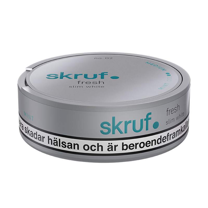 Skruf no 02 Slim Fresh White Portion från tillverkaren Skruf Snus är ett snus av typen White Portionssnus. Prillan är normalstark och har en smak av spearmint. Snuset i prillan är lite mindre fuktigt och formatet på prillor är Slim, vilket ger en bra passform under läppen. Hållbarheten på snuset är ca 6 månader.