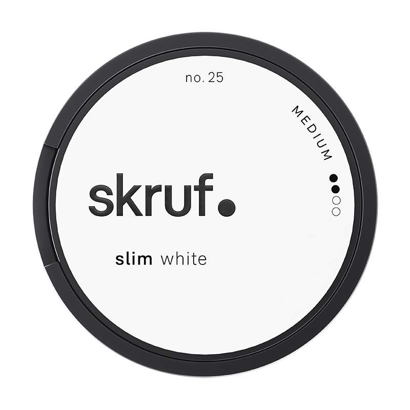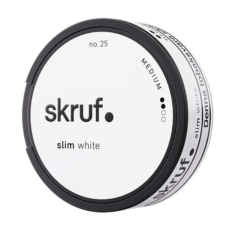 Snuset Skruf no 25 Slim Original White Portion har styrkan 2 Normal med ett nikotininnehåll på 10 mg per prilla vilket ger en nikotinhalt på 1,5%. Varje prilla innehåller 0,7 gram snus och en snusdosa består av 24 stycken prillor. Det ger en total snusvikt i en dosa på 16,6 gram.
