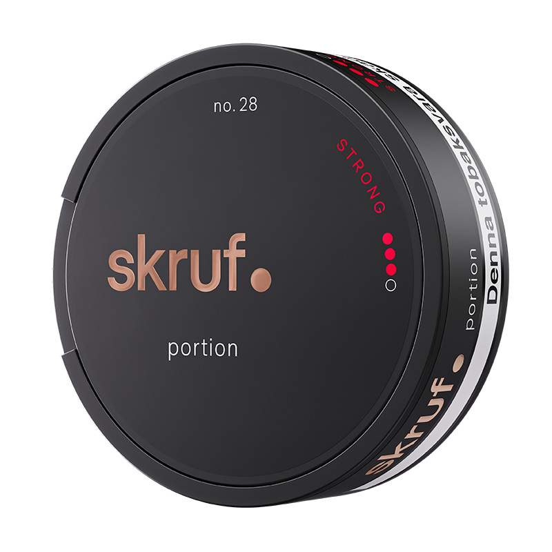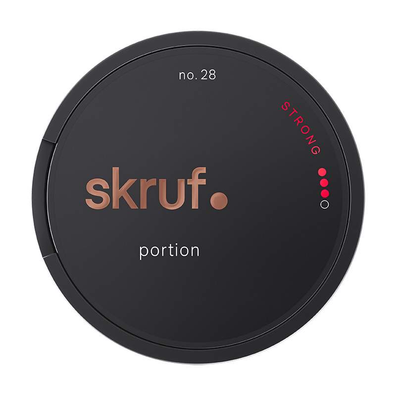 Skruf no 28 Stark Portion är ett snus från tillverkaren Skruf Snus av typen Portionssnus, där prillan är normalstor. Snuset har en klassisk smak av tobak samt rosolja, citrus och bergamott. Prillan har även ett inslag av salt för bättre balans. Skruf Stark prillor har en fuktig utsida vilket ger en snabb utsöndring av både nikotinet och smaken.