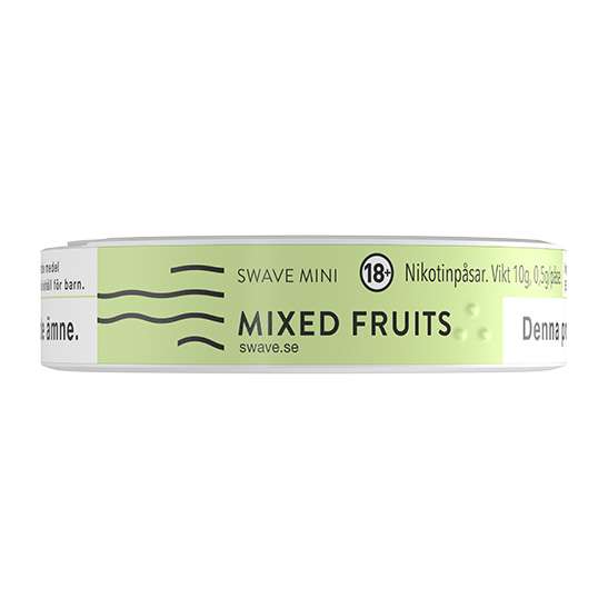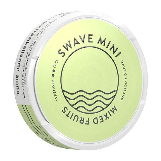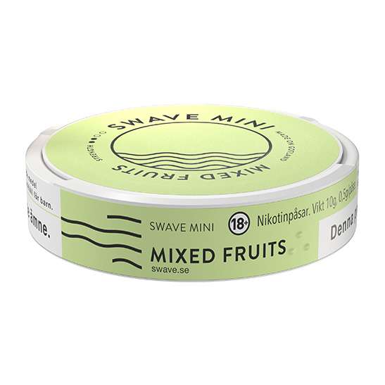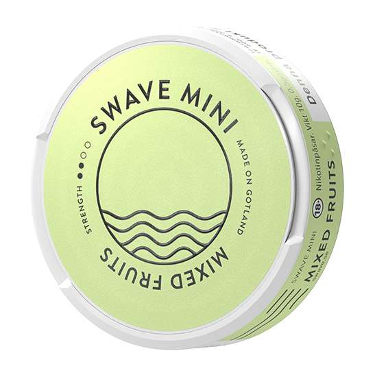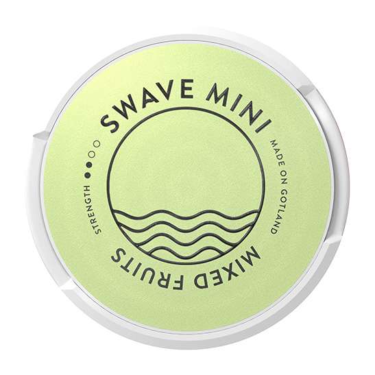 Swave Mixed Fruits Mini från Gotlandssnus är ett snus av typen All White i formatet Mini. Det är en långsmal prilla som är torr på ytan med fuktigt innehåll för låg rinnighet. Snuset har en smak av hallon, jordgubbe och melon samt en syrlighet från citron.