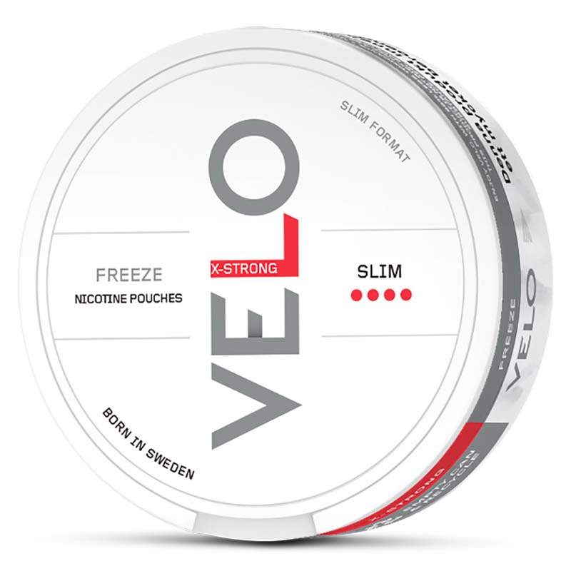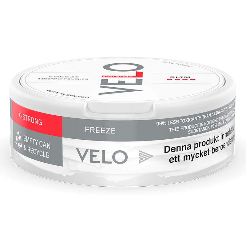 Snuset VELO Freeze X-Strong har styrkan 4 Extra Stark genom sina 11 mg/påse i nikotininnehåll. Eller omräknat till procent blir nikotinhalten 1,56%. Varje prilla innehåller 0,7 gram och det finns 20 prillor i varje dosa, vilket ger en total snusvikt på 14 gram per dosa.