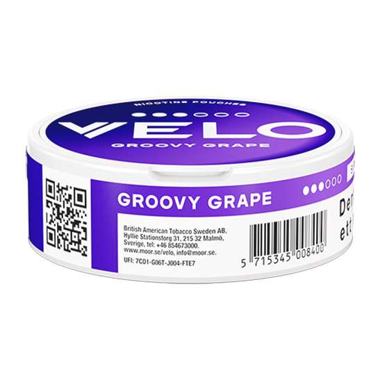 VELO Groovy Grape Strong Slim (har i jan 2025 bytt namn till VELO Purple Grape Strong Slim)  från tillverkaren British American Tobacco. Har en smak av röda druvor.