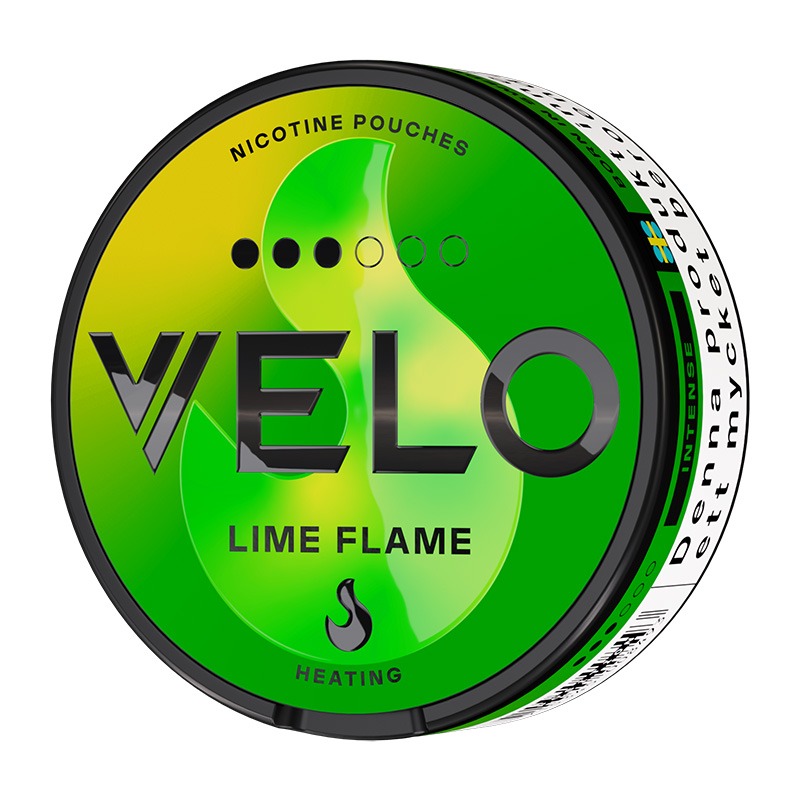 VELO Lime Flame Strong Slim från tillverkaren British American Tobacco. Snuset är av typen All White, eller nikotinpåsar och vitt snus som typen även kallas, en prilla helt utan tobak fast med nikotin. Prillan har formatet Slim som är en diskret mindre prilla vilken har en bra passform under läppen. Prillorna har en smak som kombinerar aromer från lime  och chilipeppar genom jalapeño. Hållbarheten på snuset är ca 12 månader. Prillornas fukthalt är 48%.