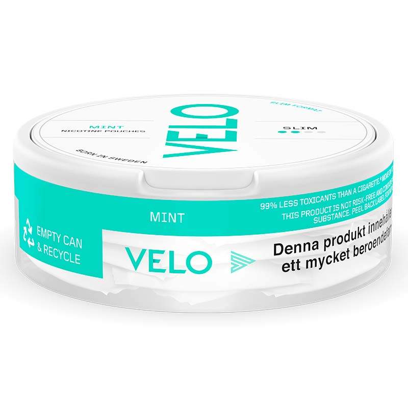 VELO Mint Slim ger dig en smak av spearmint kombinerat med mentolens friskhet. Formatet på prillorna är Slim. Snuset tillverkas av British American Tobacco och är en nikotinpåse, eller all white som de även kallas, helt utan tobak fast med nikotin. I varje dosa finns 20 prillor som väger 0,7 g per prilla, det ger en totalvikt på 14 gram per snusdosa. Prillorna har en nikotinhalt på 8 mg per gram, vilket blir 0,8% eller 5,6 mg nikotin per nikotinpåse.