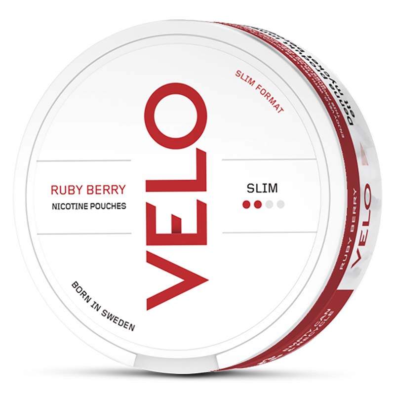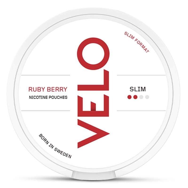 VELO Ruby Berry Slim är ett snus av typen all white eller nikotinpåse som den även kallas. Ett snus helt utan tobak som kommer från tillverkaren British American Tobacco. Prillan har en smak av röda bär, samt toner av lite grönska och med en viss syrlighet. Formatet på prillan Slim och styrkan 2 Normal.