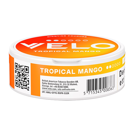 VELO Tropical Mango Slim (hette tidigare VELO Breezy Mango Slim) från tillverkaren British American Tobacco är en nikotinpåse, eller all white som de även kallas, i formatet slim. Snuset har en tropisk smak. Det är 20 prillor i varje dosa. Påsarna väger 0,7 gram vilket ger en snusvikt på 14 gram per dosa.