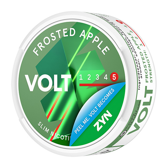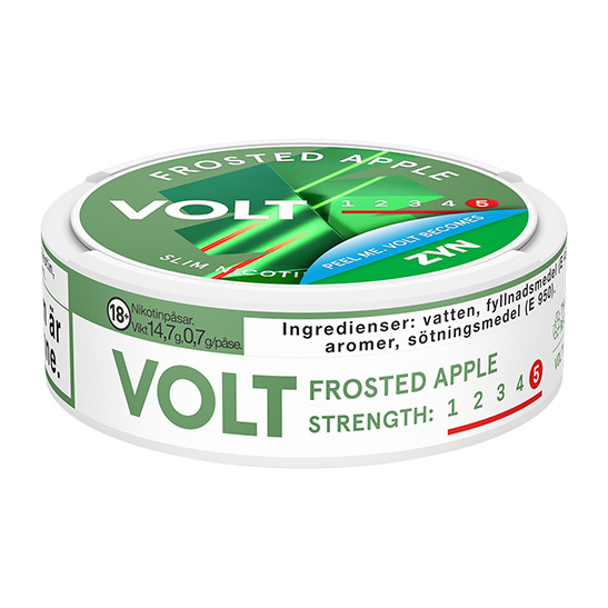 VOLT Frosted Apple Super Strong tillhör VOLT snusfamiljen från tillverkaren Swedish Match. Snuset är av typen All White, eller nikotinpåsar och vitt snus som typen även kallas, en prilla helt utan tobak fast med nikotin. Prillan har formatet Slim som är en diskret mindre prilla vilken har en bra passform under läppen.