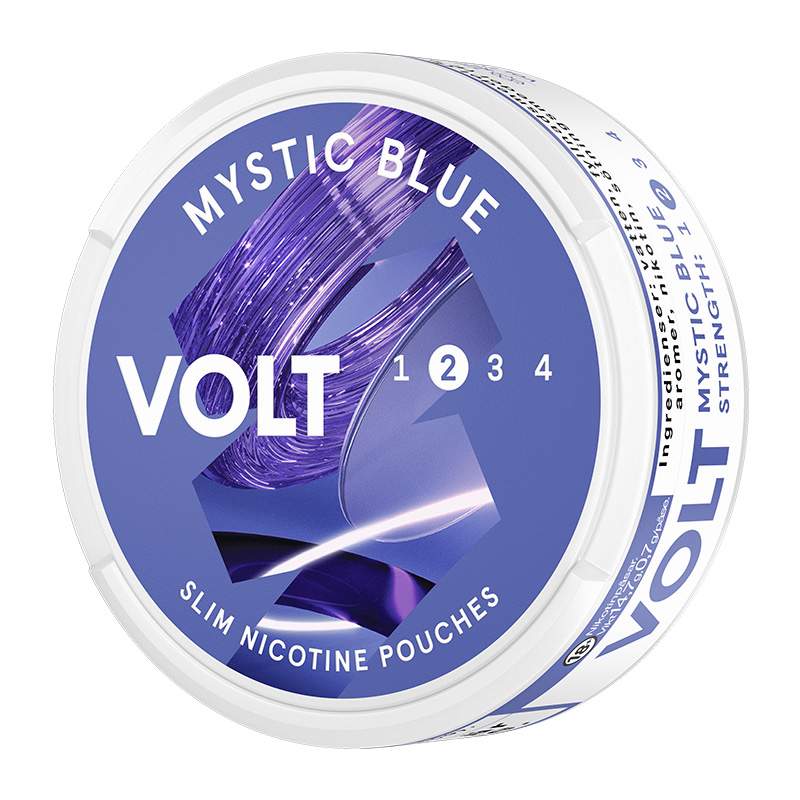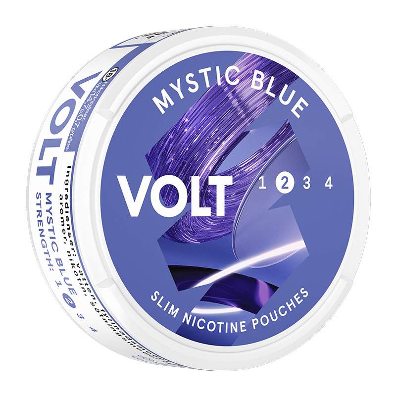 VOLT Mystic Blue Slim kommer från tillverkaren Swedish Match. Snuset är av typen All White, eller nikotinpåsar och vitt snus som typen även kallas, en prilla helt utan tobak fast med nikotin. Prillan har formatet Slim som är en diskret mindre prilla vilken har en bra passform under läppen. Prillan har en smak av mörka bär, vanilj och pepparmint. Fukthalten är 40%.