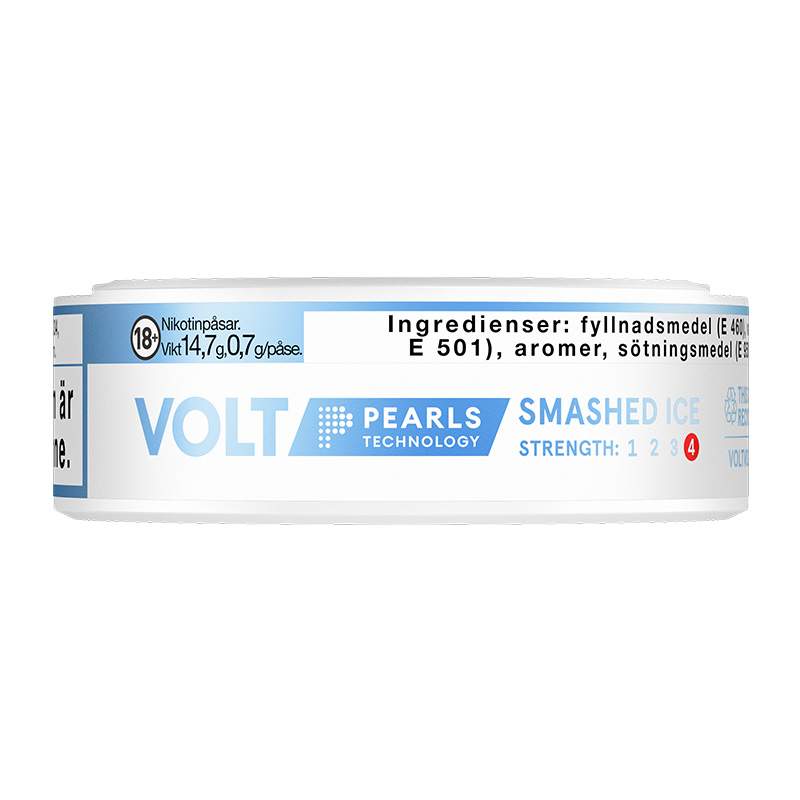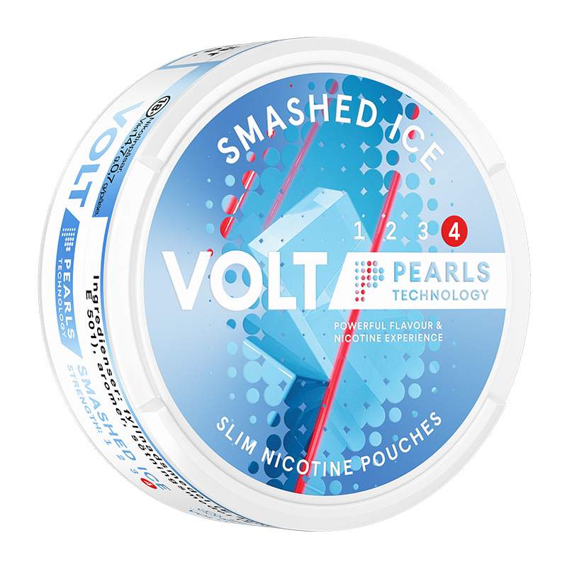 VOLT Pearls Smashed Ice från tillverkaren Swedish Match är en fortsättning på Pearls-teknologin. Prillan har en kylande smak av mentol och med inslag av mynta samt eukalyptus. Pearls-teknologin innebär att påsens innehåll har formen av små pärlor. Snuset är av typen All White, eller nikotinpåsar och vitt snus som typen även kallas, en prilla helt utan tobak fast med nikotin. Prillan har formatet Slim som är en diskret mindre prilla vilken har en bra passform under läppen.