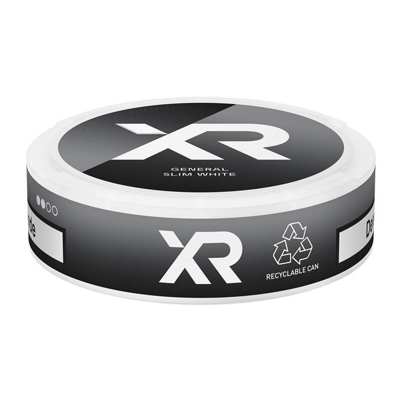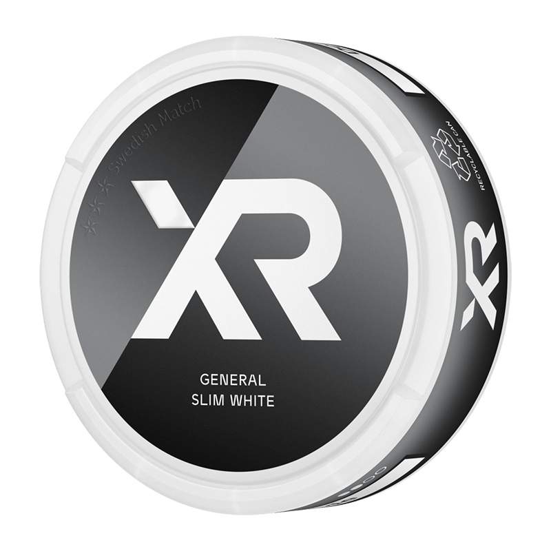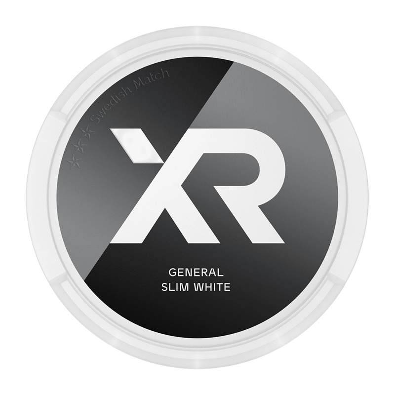 Snuset XR General Slim White är av typen White Portionssnus. Snuset kommer från tillverkaren Swedish Match. Snuset innehåller tobak och har en ljus tobakskaraktär med tydliga smakinslag av bergamott och citrus, samt aningen te. Formatet på prillan är Slim vilket ger en långsmal prilla med optimerad passform under läppen. Prillan är torr på ytan fast med ett fuktigt innehåll vilket skapar en låg rinnighet samt en långvarig smakrelease.