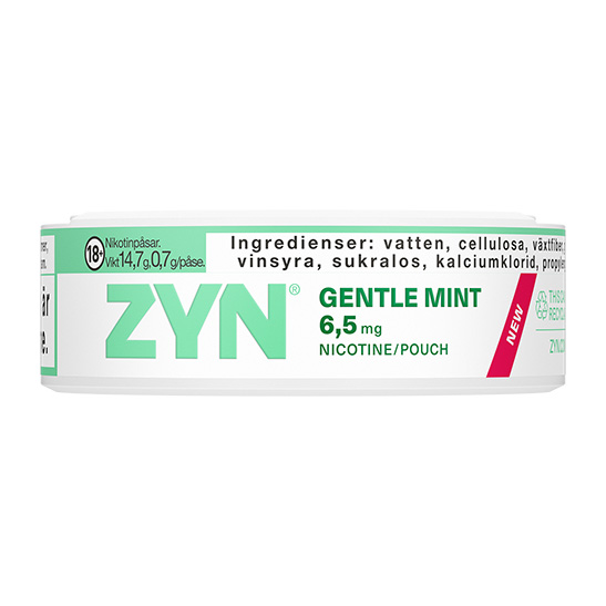 ZYN Gentle Mint Slim är ett snus i ZYN familjen från tillverkaren Swedish Match. Snuset är av typen Vitt Snus, eller nikotinpåsar och all white som typen även kallas, en prilla helt utan tobak fast med nikotin. Prillan har formatet Slim som är en diskret mindre prilla vilken har en bra passform under läppen. Smaken på prillan är spearmint och vanilj. Prillan som är en helvit prilla är torr på ytan samt har ett fuktig innehåll för lång rinninghet. Fukthalten på snuset är 40% och hållbarheten är ca 12 månader.