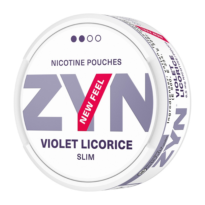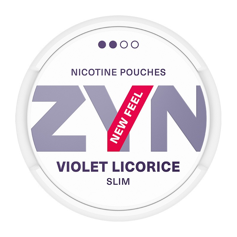 ZYN Violet Licorice Slim Normal är en nikotinpåse, eller All White som typen även kallas, helt utan tobak fast med nikotin. Prillans smak är lakrits, viol och salmiak, med en viss sälta. Nu i en uppdaterad version med ”New Feel”. Snuset ZYN tillverkas av Swedish Match. Formatet på prillan är Slim vilket ger en långsmal prilla.